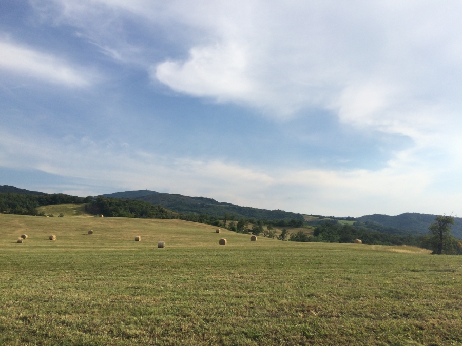Sono giorni di fienagione, il tempo è perfetto, l'erba viene sfalciata ed in un giorno soltanto è asciutta e pronta per essere imballata. Queste sono alcune foto dei campi che dedichiamo unicamente alla raccolta di fieno da prato polifita...e che vista!